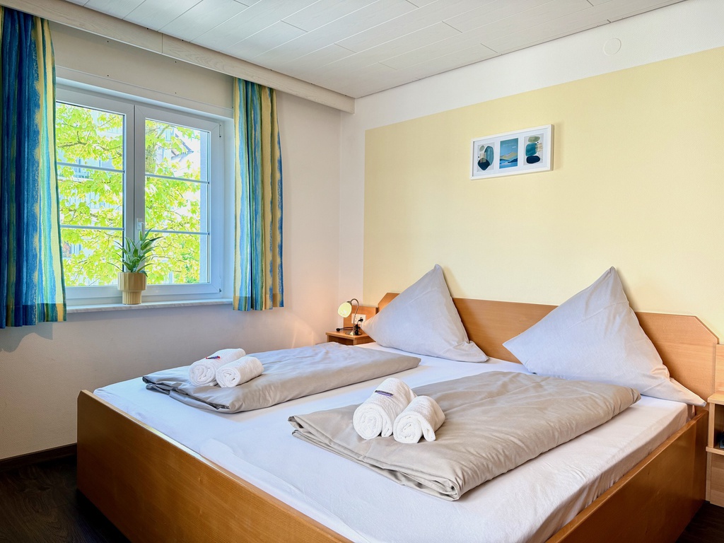 Die Ferienwohnung "Rebgarten" verfügt über 2 getrennte Schlafzimmer, die jeweils mit einem Doppelbett und einem großen Kleiderschrank ausgestattet sind. In einem der beiden Schlafzimmern befindet sich ein zusätzlicher Waschtisch.